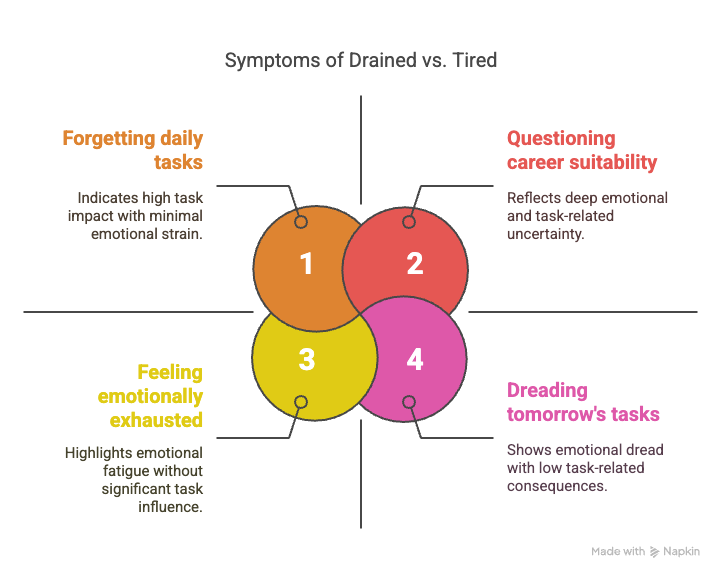 Tired says: "I worked on something that mattered." Drained says: "I was busy but can't remember why."